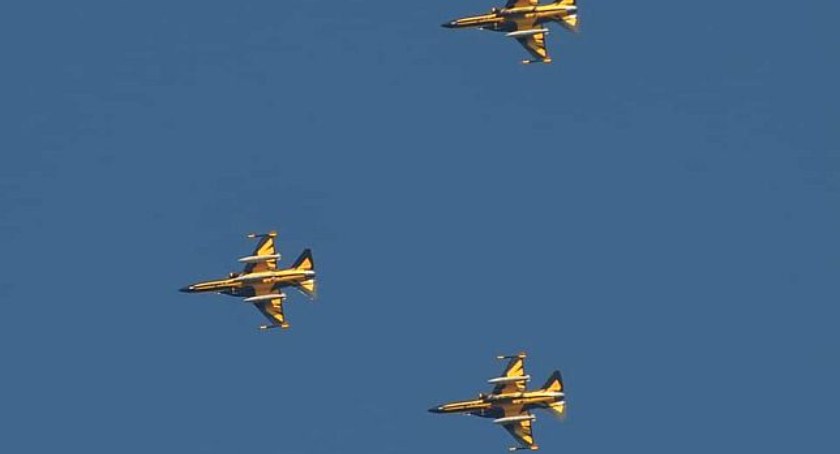 W poniedziałek mieszkańców naszego regionu zastanawiało, co za maszyny pojawiły się nad naszymi głowami. Spieszymy z odpowiedzią. To zespół akrobacyjny sił powietrznych Republiki Korei występujący na samolotach szkolenia zaawansowanego T-50B Golden Eagle.